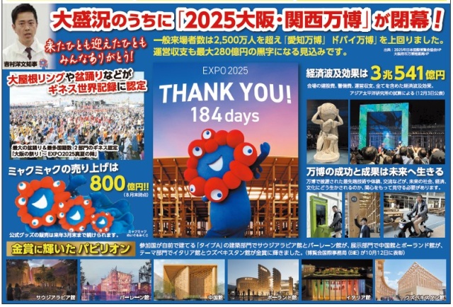 年末ということでこの1年を少し振り返りますと、今年は府政にとっては何をおいても関西万博。これからの大阪の成長にむけた、また未来を作るきっかけとなった事業と確信しています。最新技術やサービスの社会実装、また国際交流を御当地大阪からさらに広げていくべく、活動していきます。