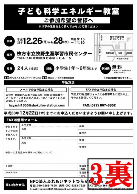 - 子ども科学エネルギー教室, 枚方市, 牧野, 生涯学習センター