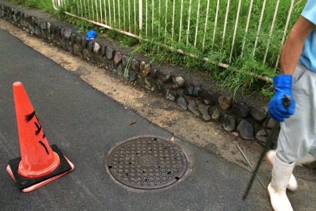 ”情報提供のご協力、ありがとうございます!”と心の中で思いつつ、すぐに下水道整備室汚水整備課(072-848-5540)に電話して、私も現場に急行。